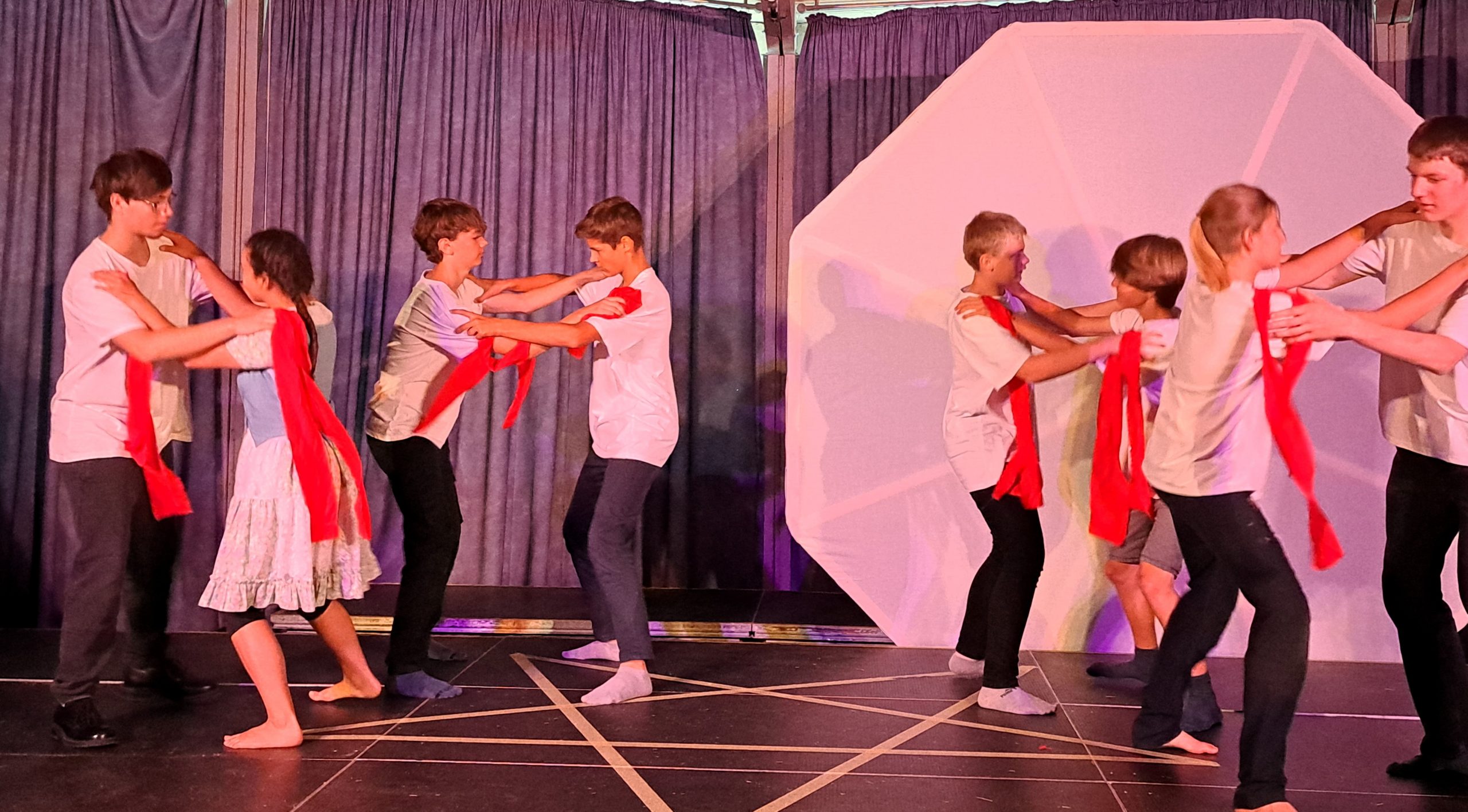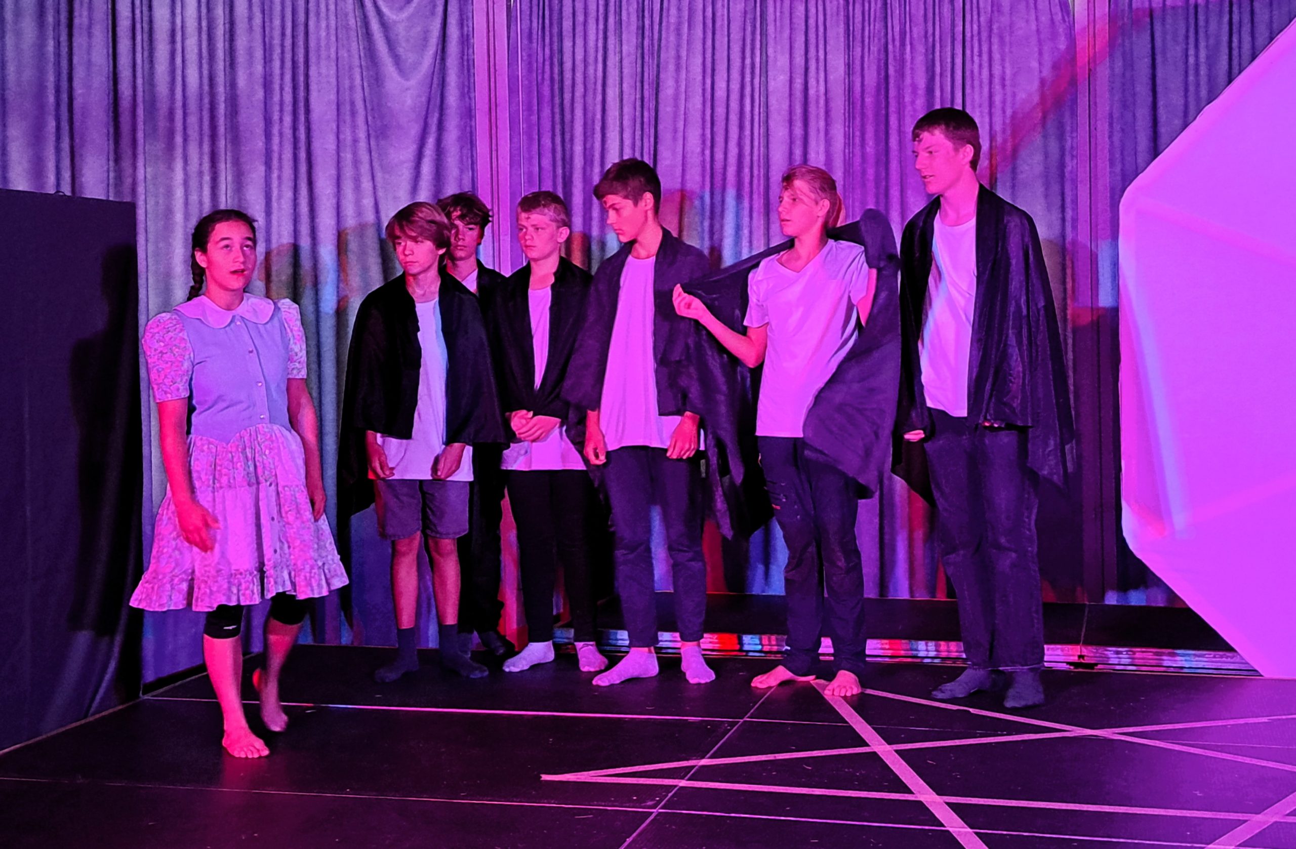 Bei uns ist was los! Die 8. Klasse der Kaspar Hauser Schule präsentiert ihr Bühnenstück.